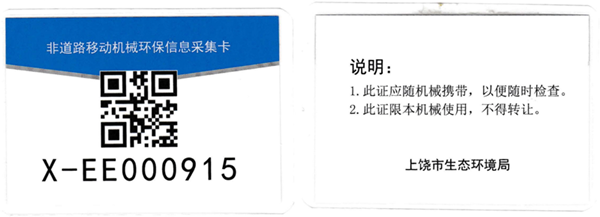 領(lǐng)取環(huán)保標(biāo)識(shí)牌及其卡片后,分公司將申領(lǐng)的非道路移動(dòng)機(jī)械環(huán)保標(biāo)牌張貼于機(jī)械設(shè)備的左右兩側(cè)或機(jī)械尾端、操作手臂等明顯位置。 張貼完畢后要求各設(shè)備管理人員及操作人員必須注意保護(hù)好機(jī)械牌照及環(huán)保信息卡片,避免磕碰污損,以備檢查核驗(yàn)。  今后,萬(wàn)年分公司的非道路移動(dòng)機(jī)械將像機(jī)動(dòng)車(chē)一樣,擁有屬于自己的“身份證”。