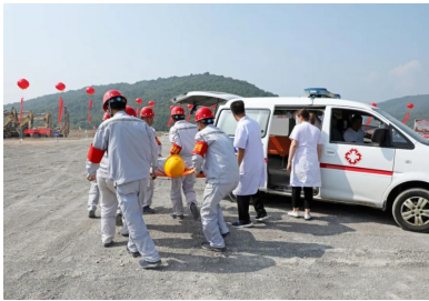 演練模擬在礦山現(xiàn)場1512平臺,由于雨后爆堆松軟,排險(xiǎn)不及時,導(dǎo)致挖掘機(jī)進(jìn)行挖裝作業(yè)時發(fā)生坍塌事故,土石坍塌砸到駕駛室,車門無法正常開啟,駕駛員被困駕駛室并且傷情不明,現(xiàn)場管理人員向應(yīng)急指揮部報(bào)告后,立即啟動應(yīng)急預(yù)案,組織人員開展傷員救助。 演練開始前兗州中材呂梁分公司項(xiàng)目經(jīng)理王建立發(fā)表講話,并介紹了項(xiàng)目情況。王經(jīng)理表示,呂梁分公司成立十年來一直秉承一個央企的責(zé)任,履行企業(yè)的安全管理職責(zé),展現(xiàn)國有大型企業(yè)的擔(dān)當(dāng)。安全工作從嚴(yán)要求,做好企業(yè)安全形象。提升服務(wù)高度、精度和寬度,為礦山行業(yè)的健康發(fā)展貢獻(xiàn)力量。